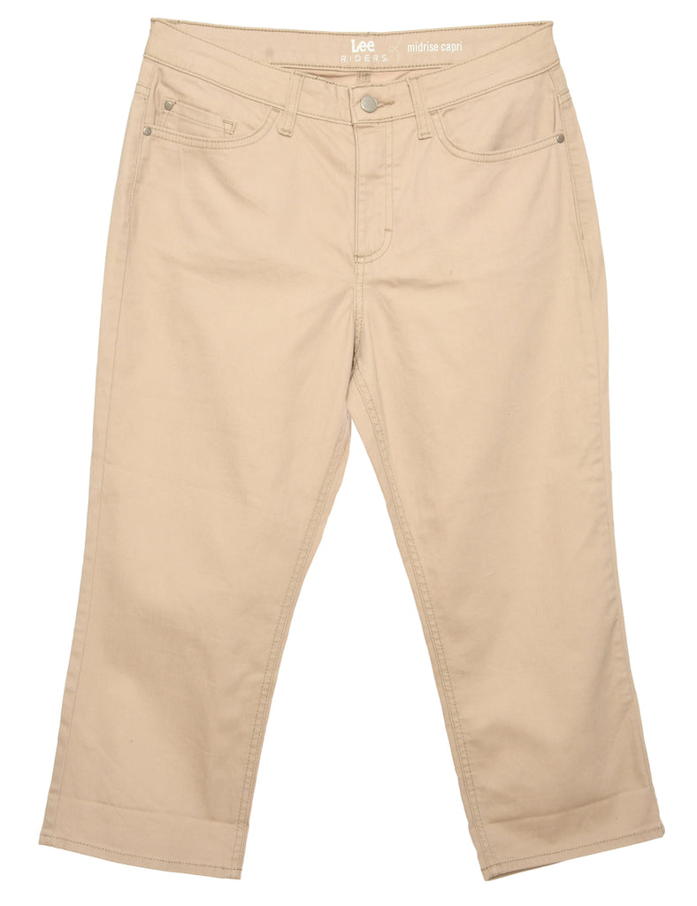 Lee cream three-quarter length cropped trousers with multiple pockets.