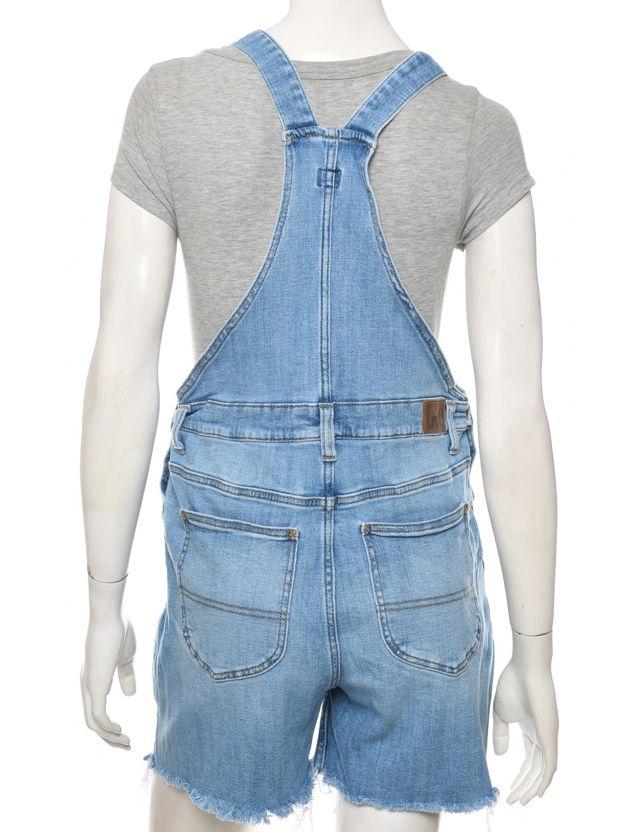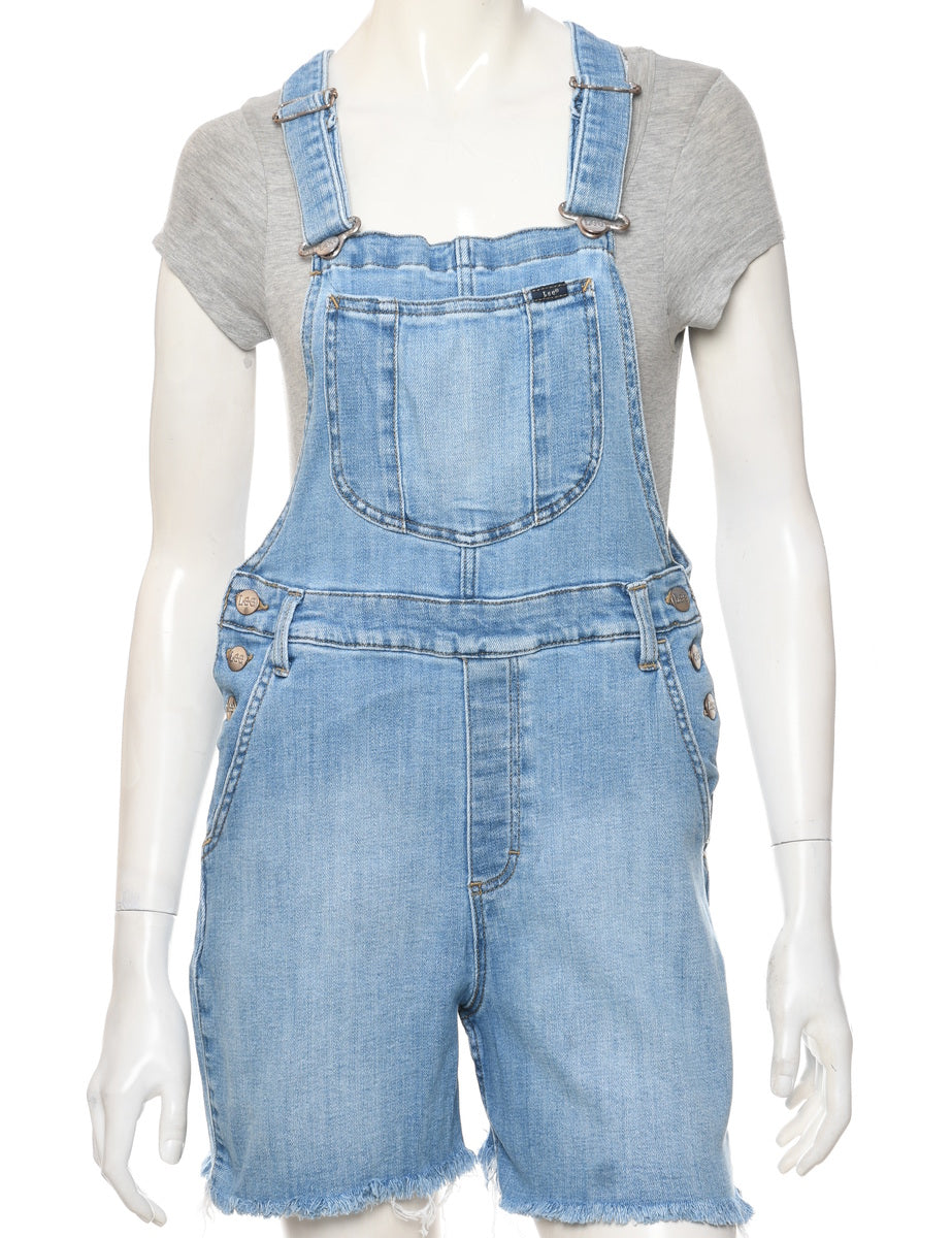 Lee frayed hem cropped dungarees in light wash with adjustable strap and multiple pockets.