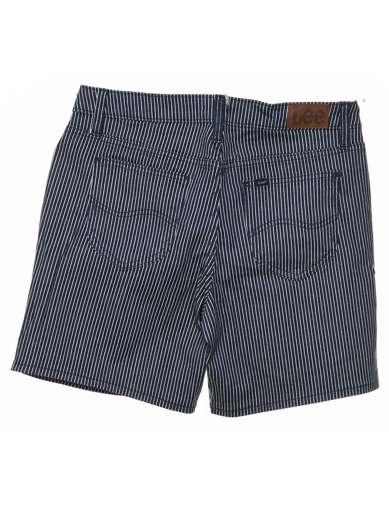Striped denim shorts in dark wash with multiple pockets. From the brand Lee.