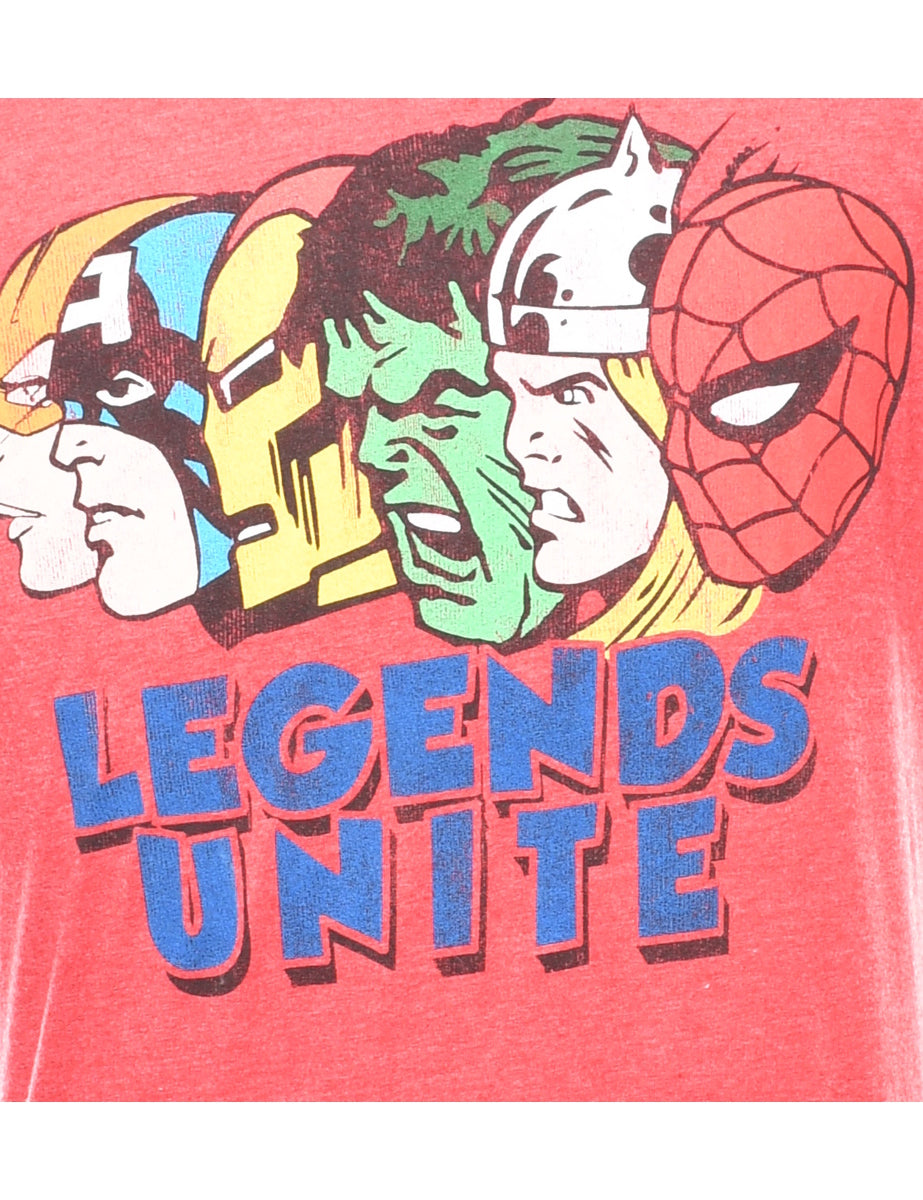 Legends unite printed t-shirt in red.
