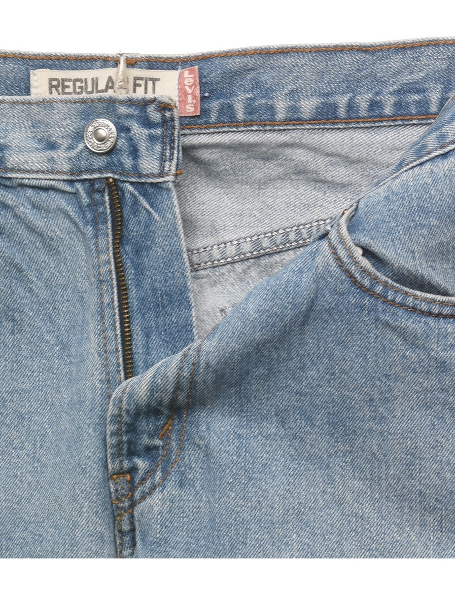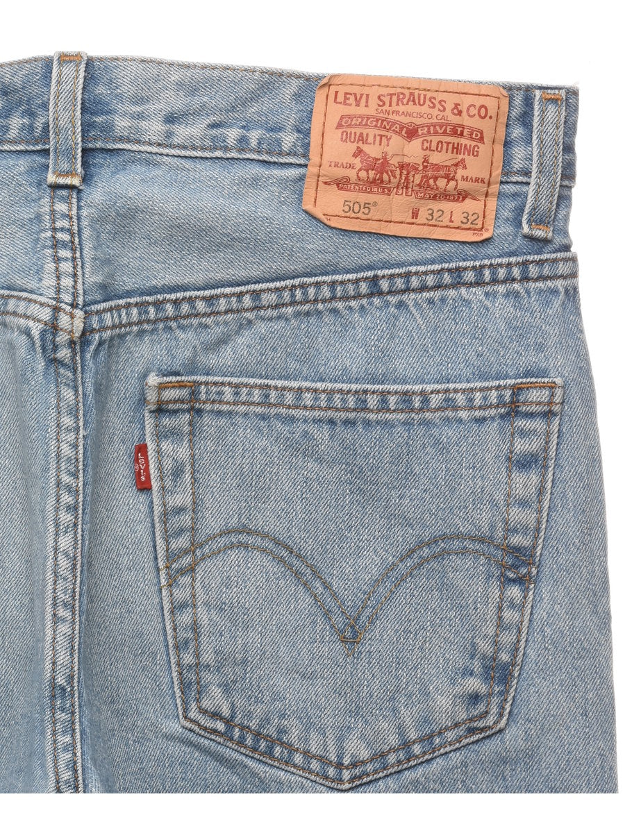 Straight leg levis 505 jeans. Comes in faded wash with multiple pockets.