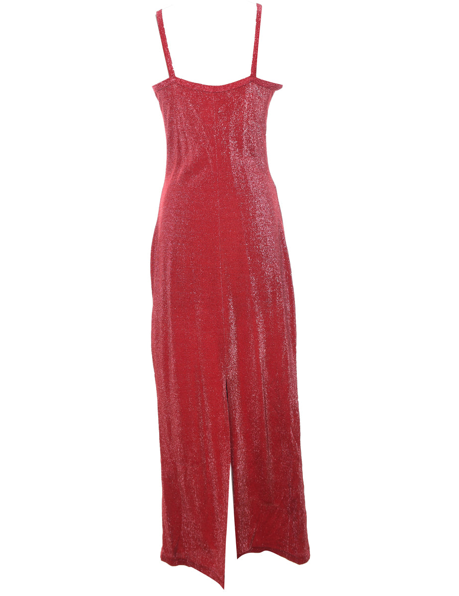 Vintage Lurex Thread Pattern Red Sparkly Evening Dress - L