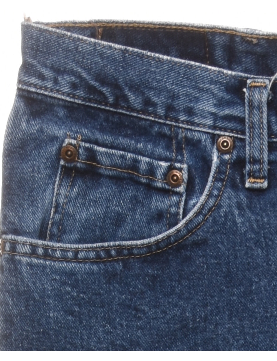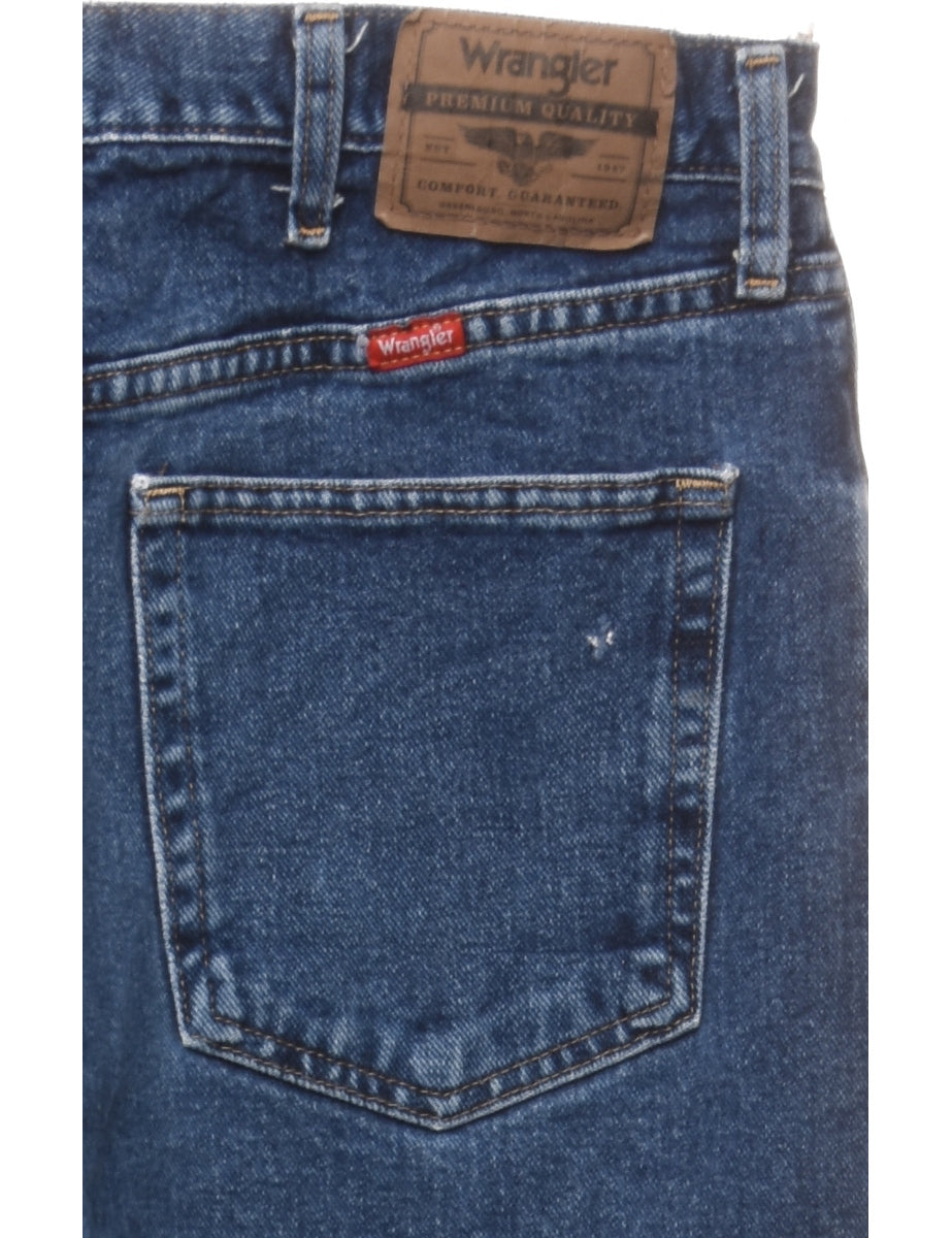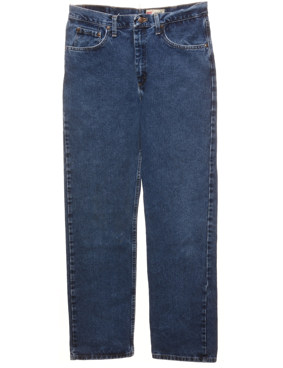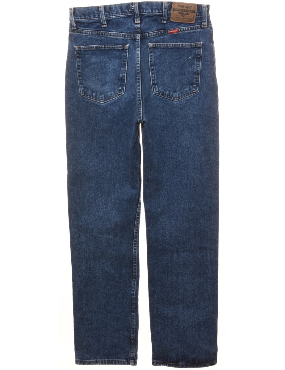 Wrangler straight leg jeans in medium wash with belt loops and multiple pockets.