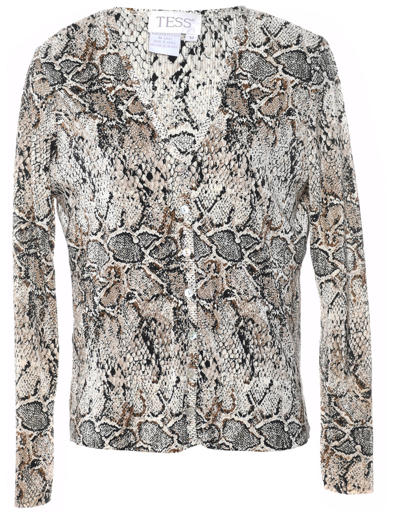 Vintage Multi-colour Y2K Silk Snakeskin Print Blouse - M