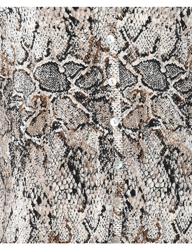 Long sleeved silk snakeskin print blouse in multi-colour.