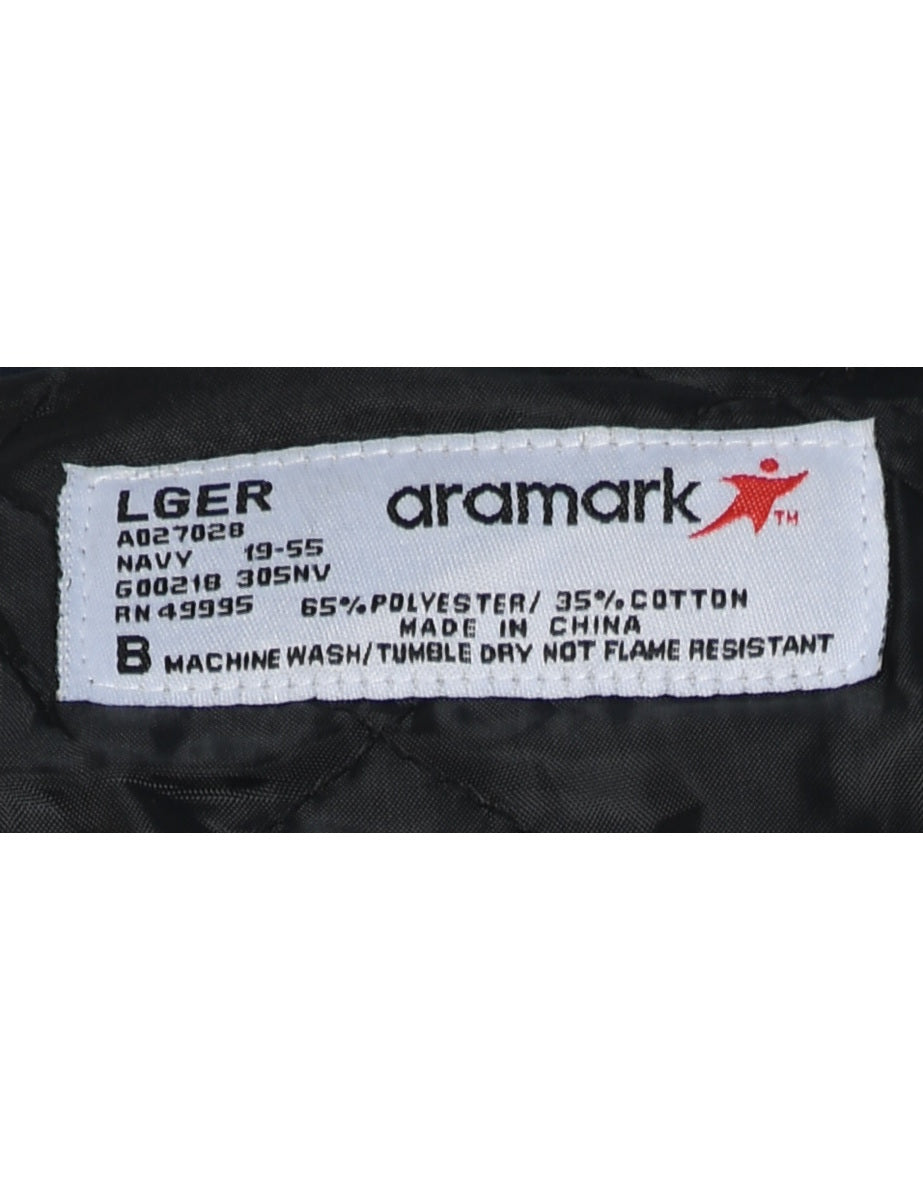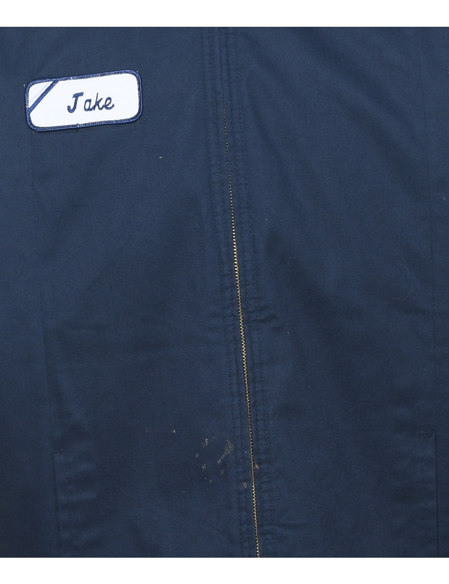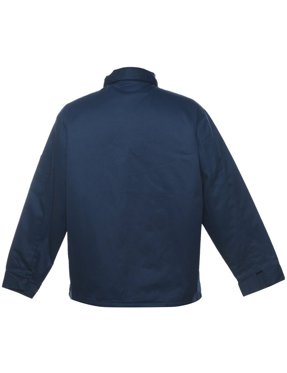 Workwear jacket comes in navy with multiple pockets. Some staining on front but otherwise good condition.