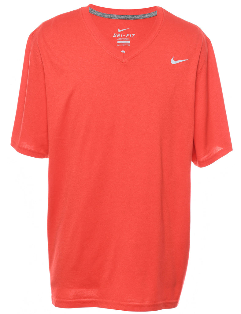 Nike Plain V-Neck Red Sports T-shirt - XL