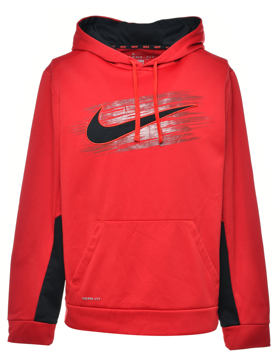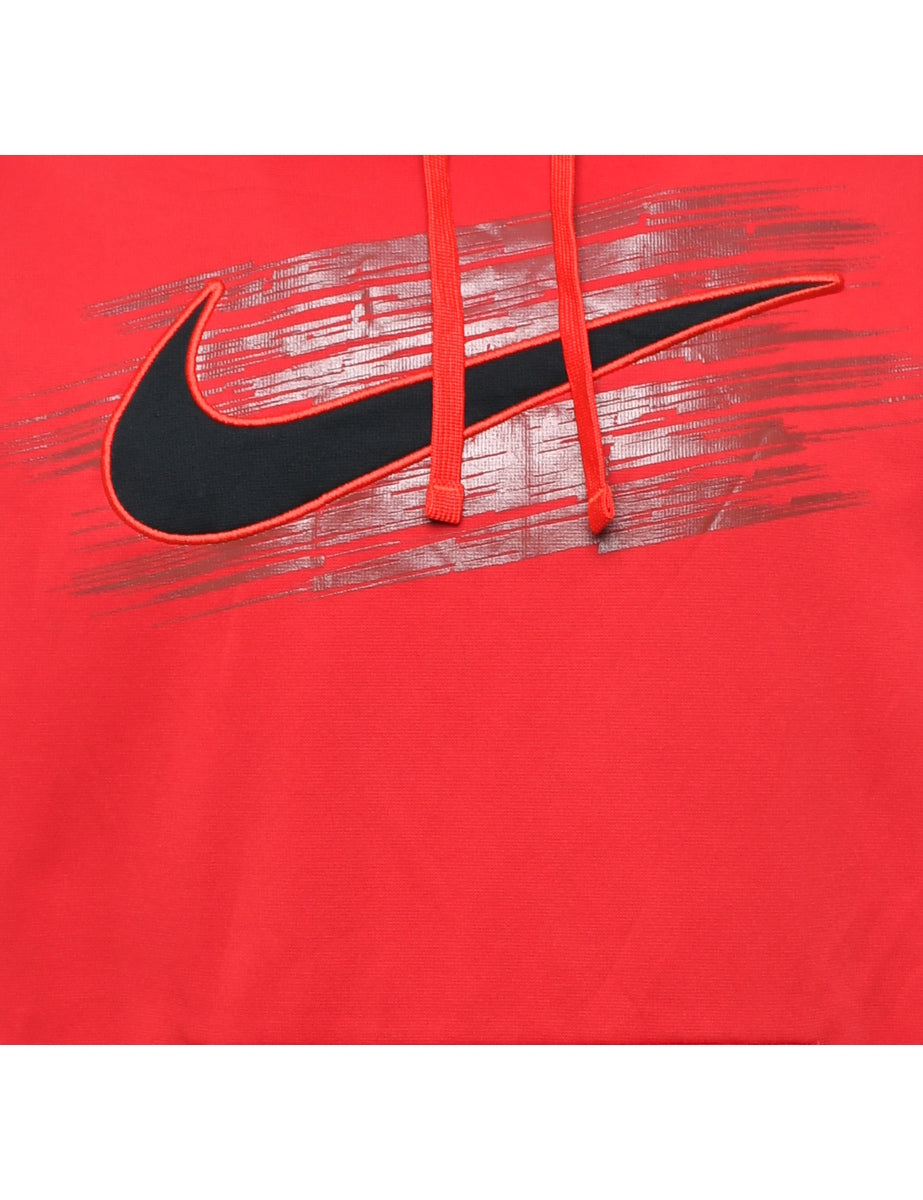 Nike printed hoodie in red with a drawstring neck and contrasting trim.