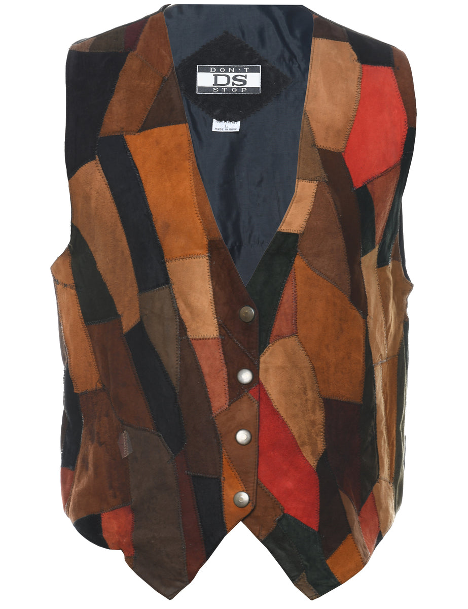 1990s Vintage Patchwork Multi-Colour Suede Waistcoat - L