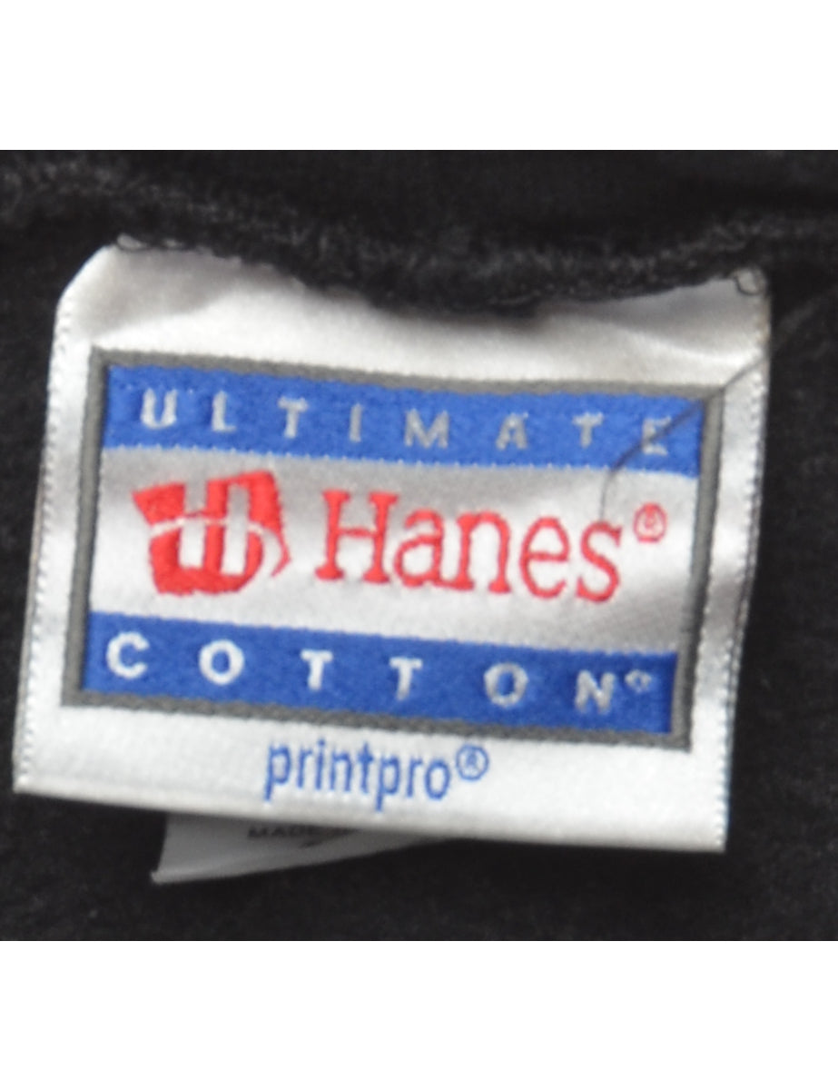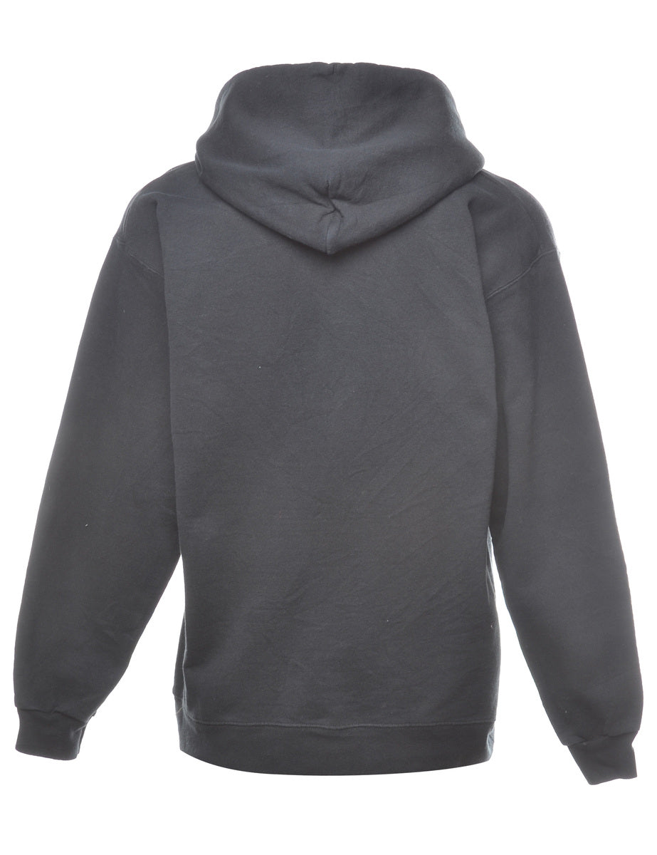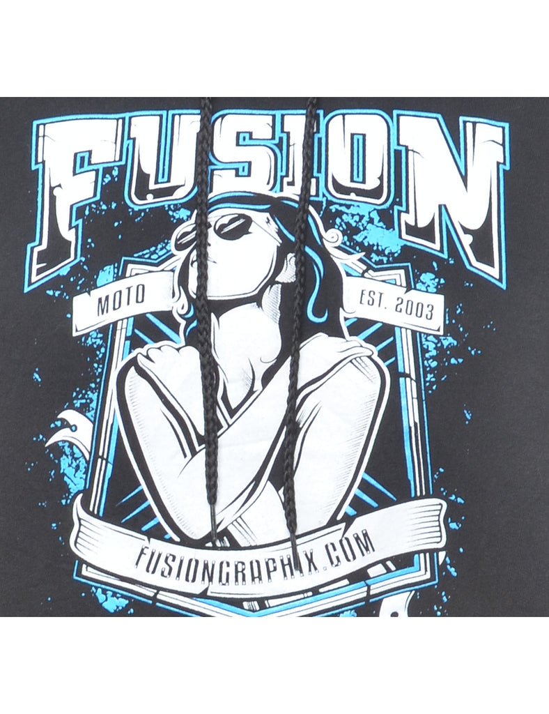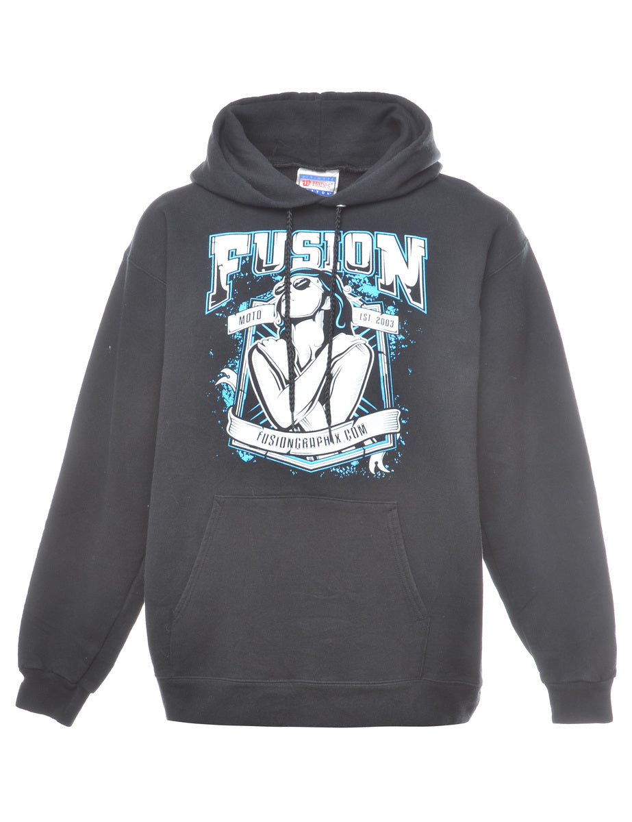 Petites hanes fusion printed hoodie comes in black with a drawstring neck and one pocket.