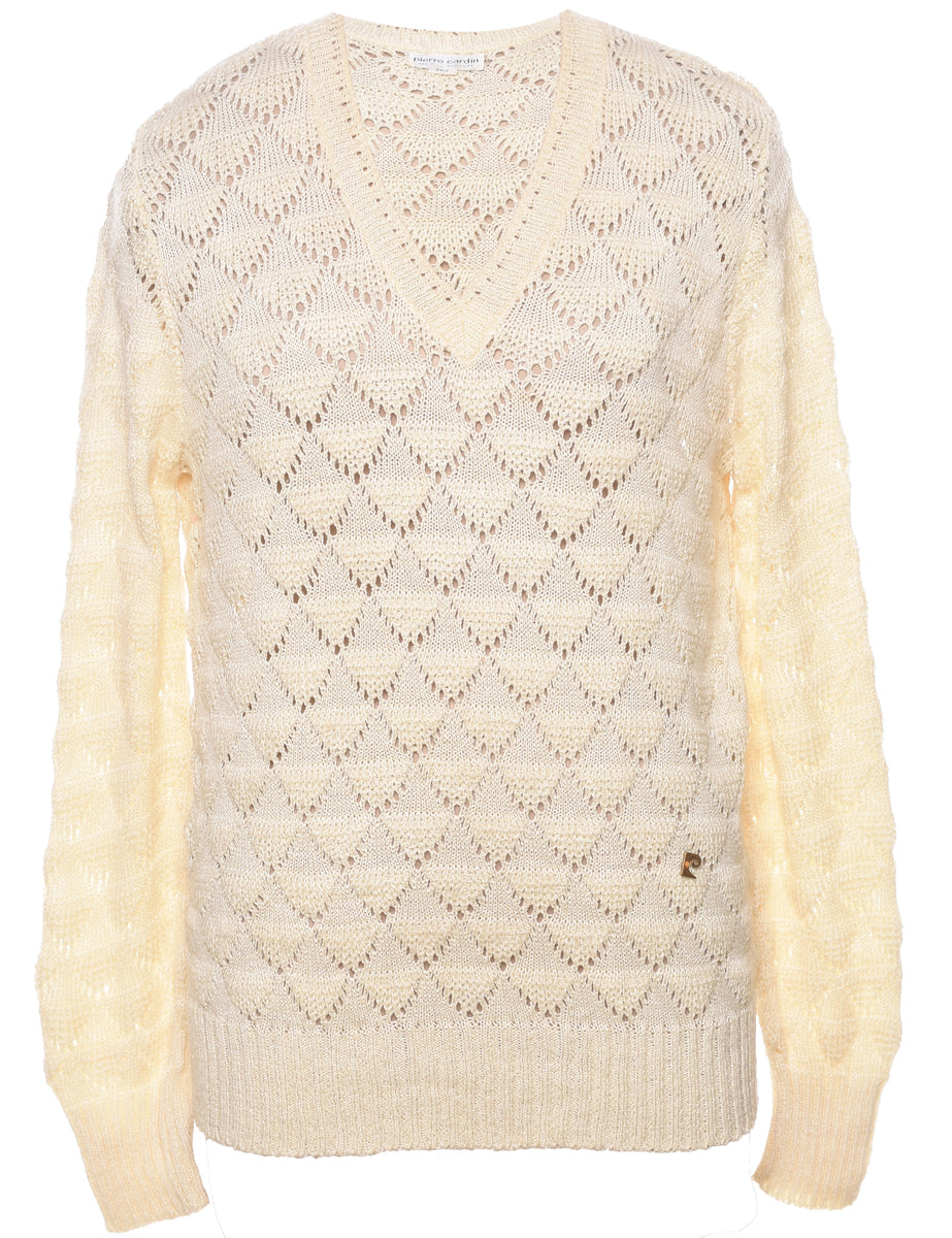 Pierre Cardin jumper in off white with crochet, a v-neck.