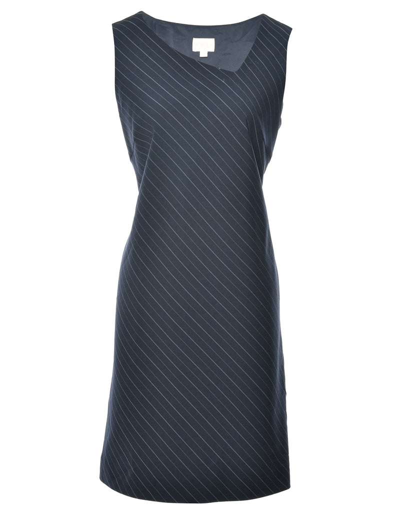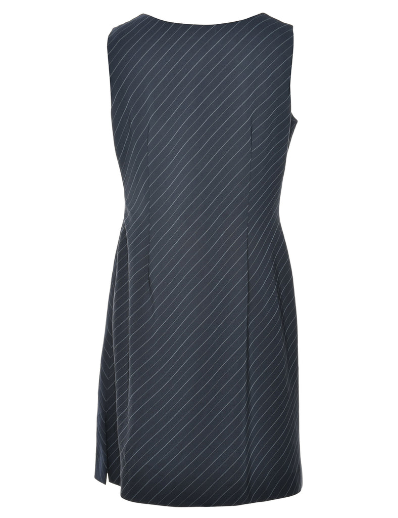 Petites pinstriped sleeveless dress. Comes in black with full lining.