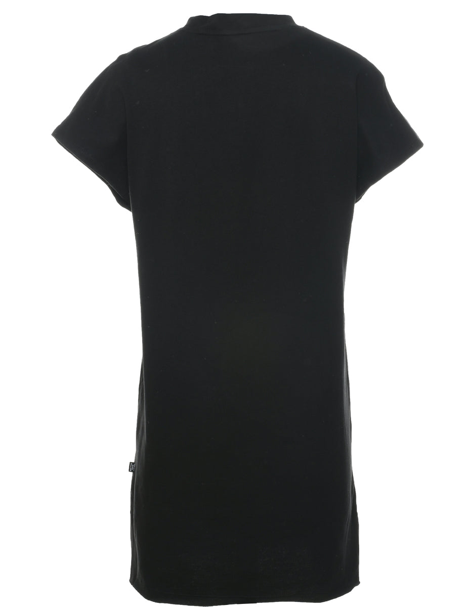 Midi length dress. Comes in black with a round neck. The size label mentions XS but based on the actual measurements we consider it a size M.