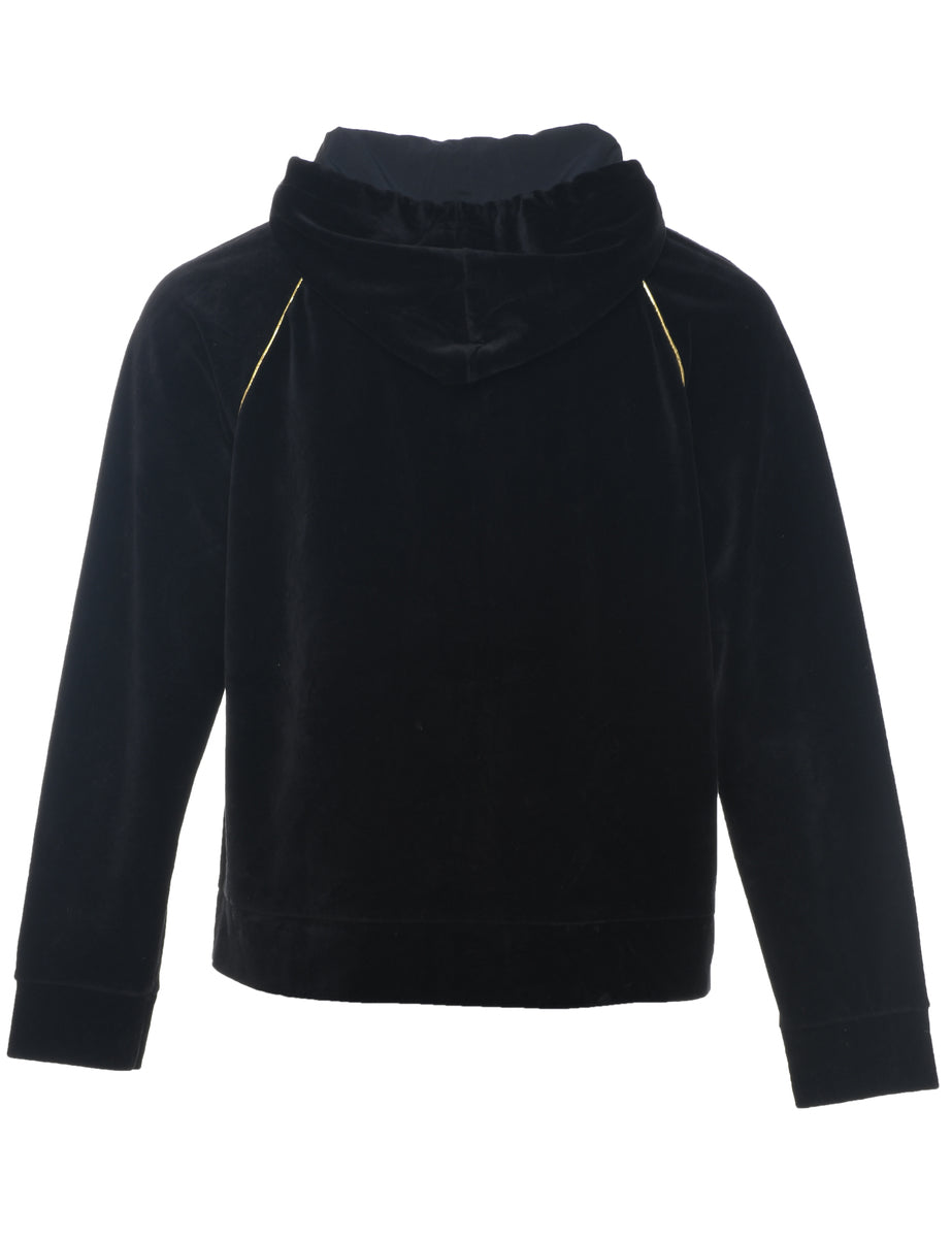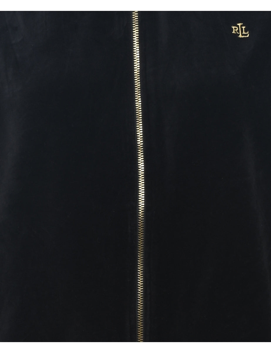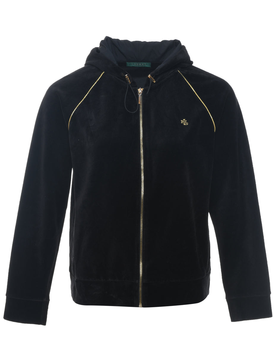 Black Y2K velour track top complete with two pockets and raglan sleeves. From the brand Ralph Lauren.