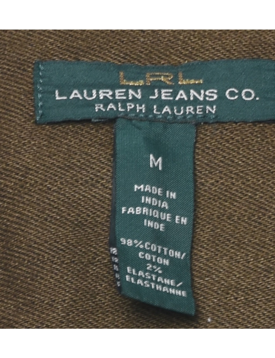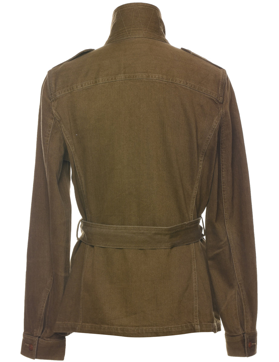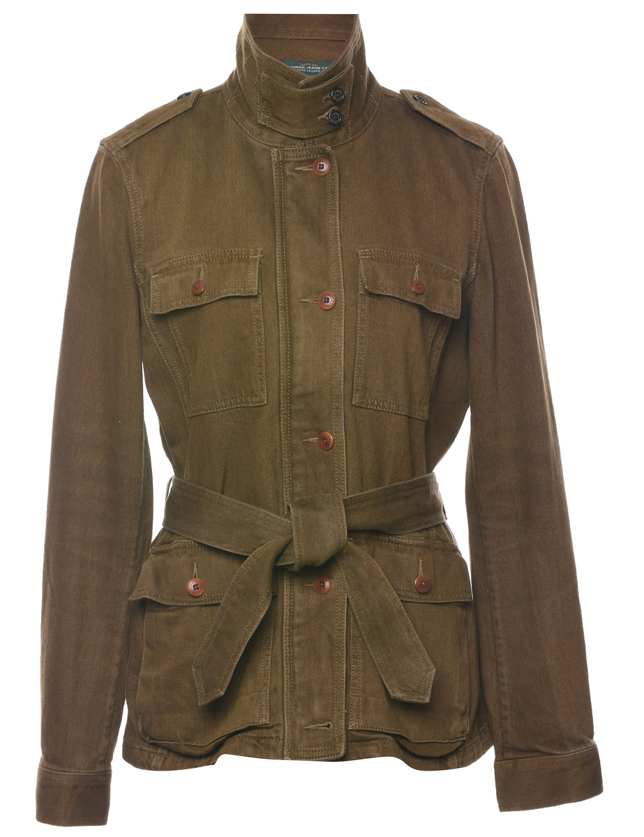 Button front jacket in olive green with epaulettes and a belt. From the brand Ralph Lauren.