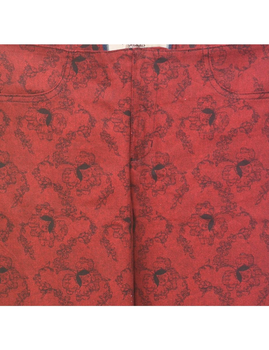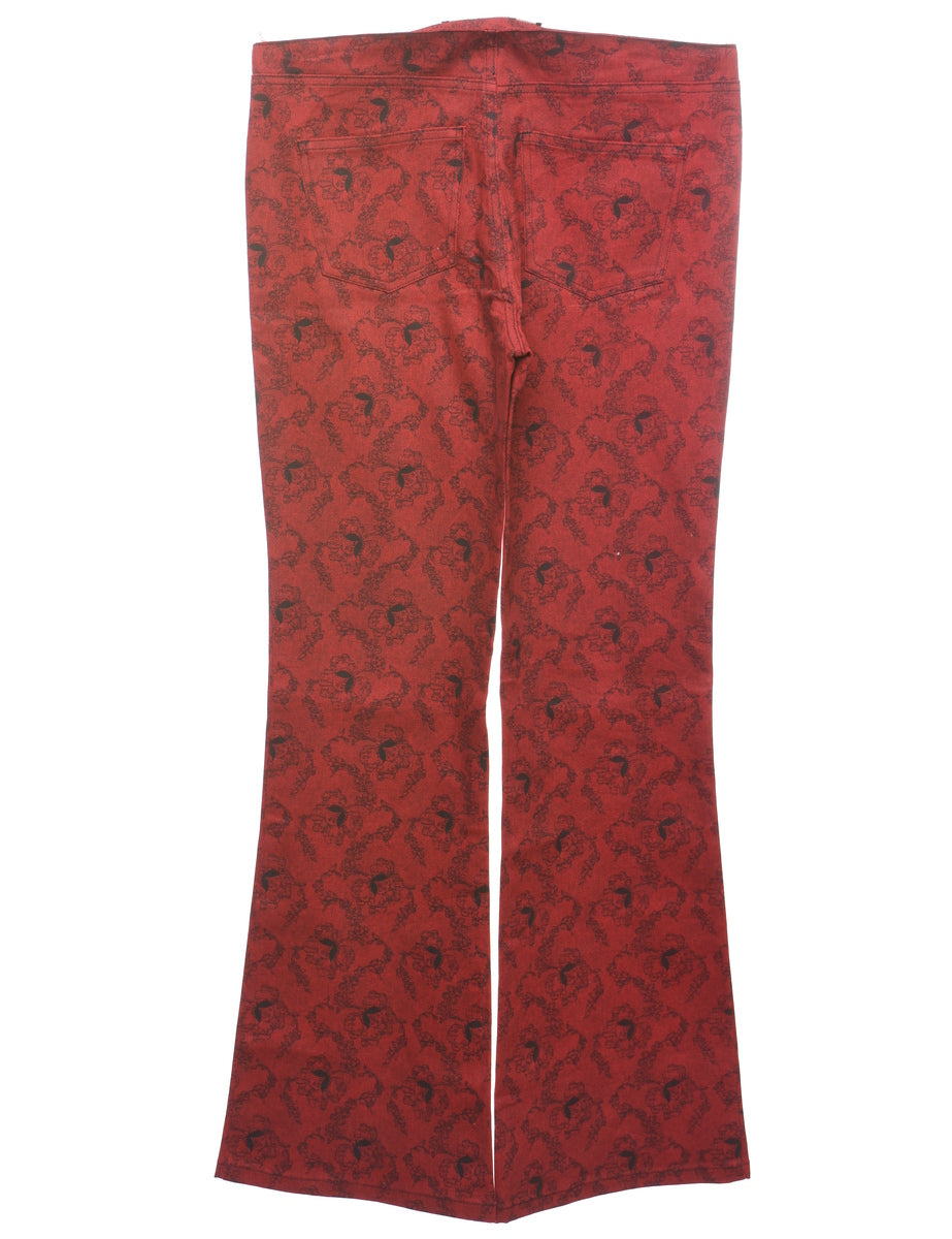 Vintage Red & Black 1990s Flared Lace Trousers - W32 L34
