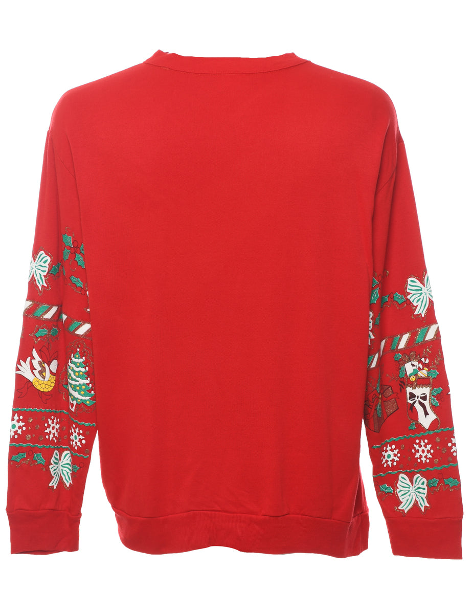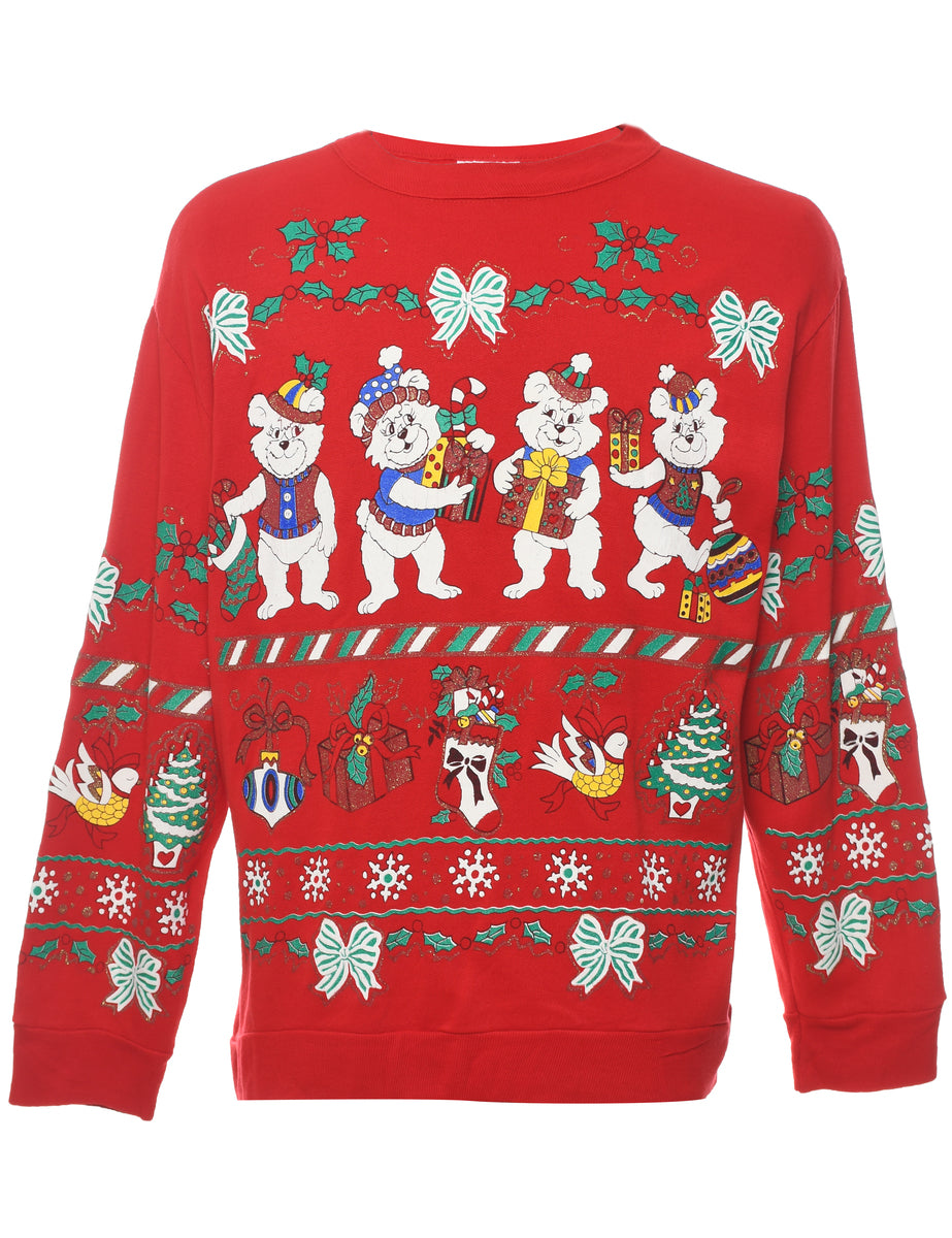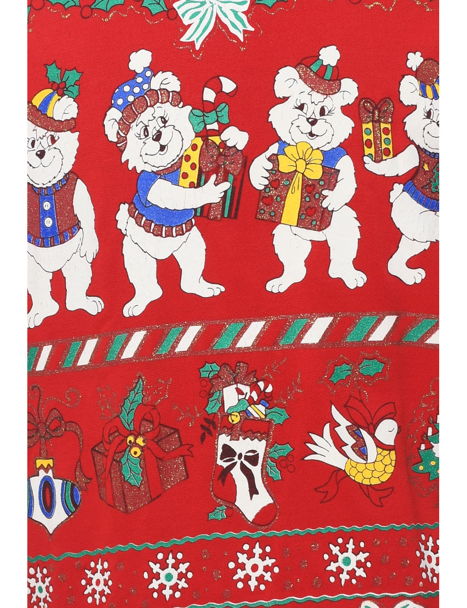 Vintage Red Teddy Bear Design Christmas Sweatshirt - L