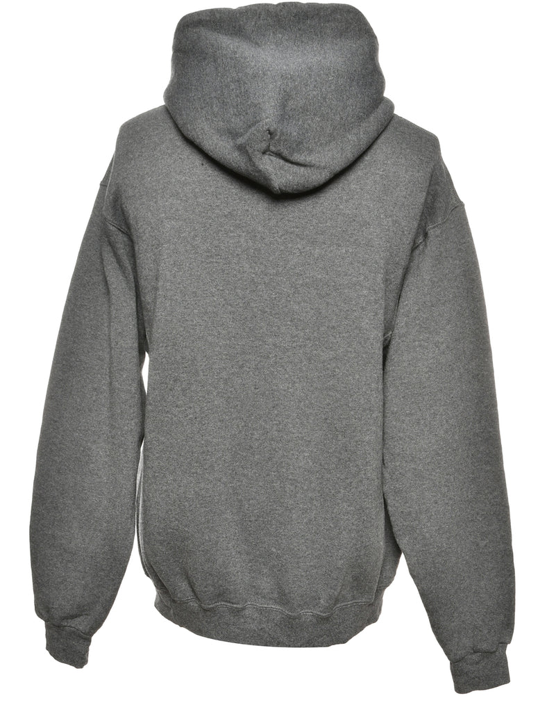 Russell Athletic printed hoodie in grey with a pocket.