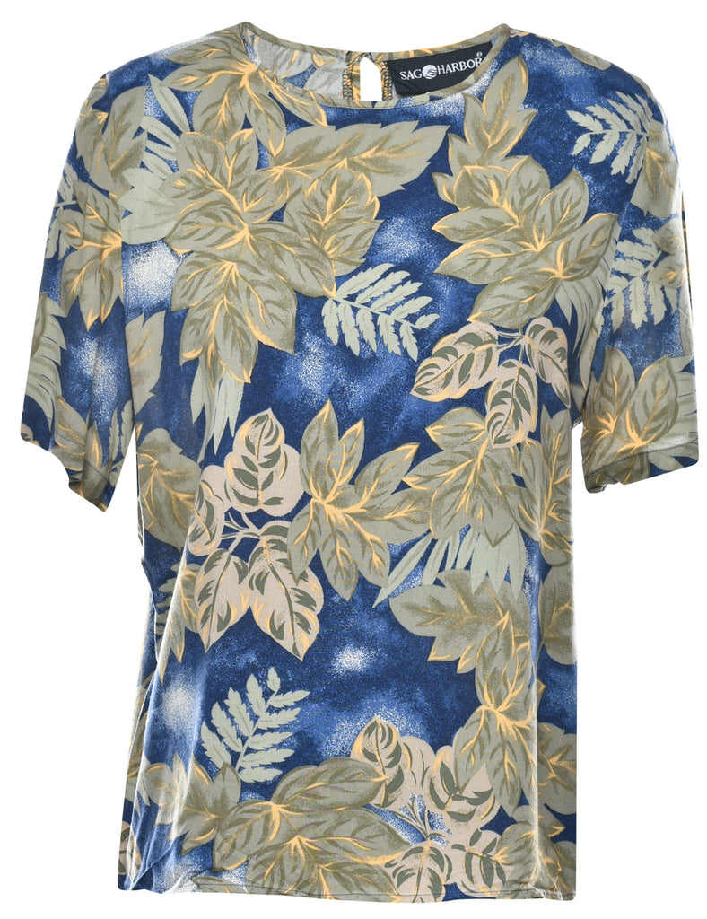 Sag Harbor foliage top in multi-colour with a round neck and removable shoulder pads.