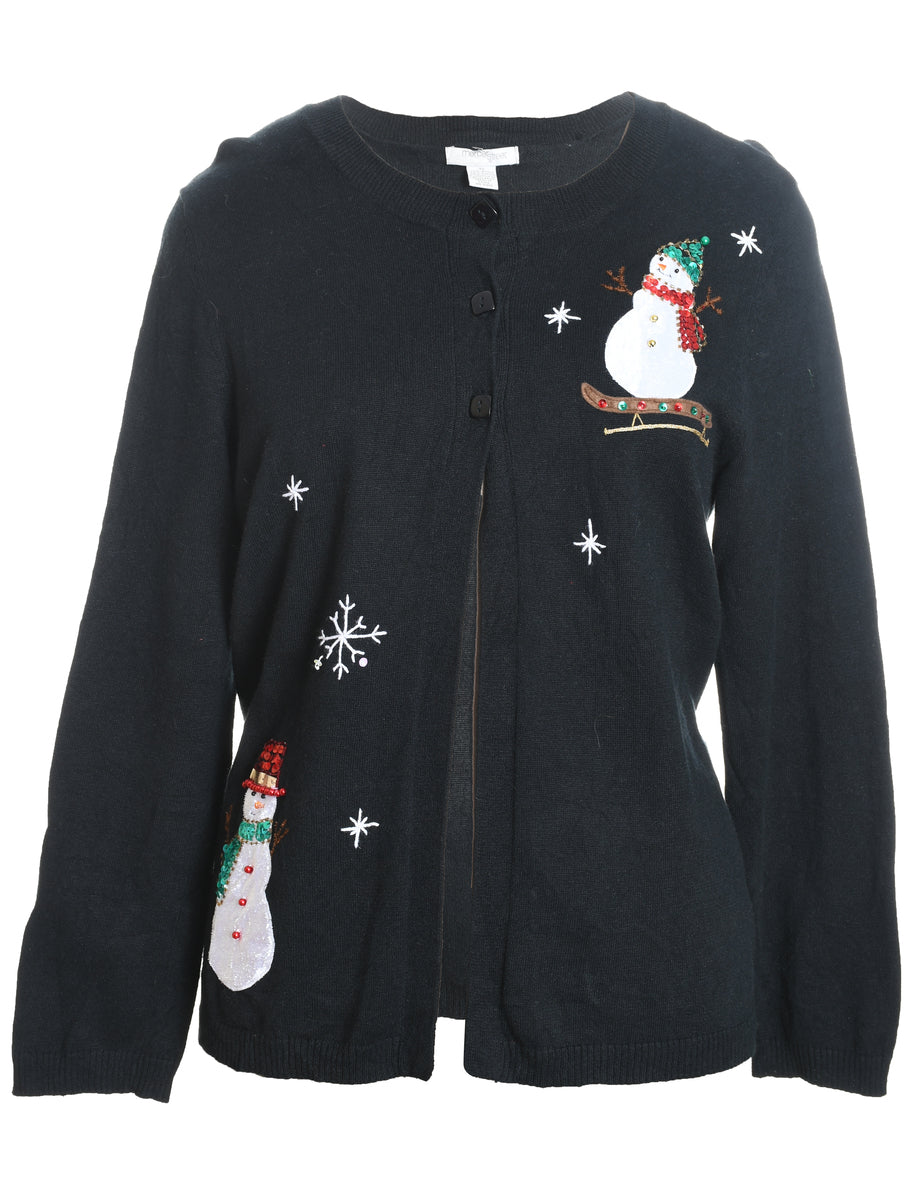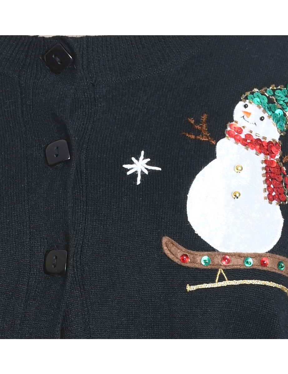 Snowman christmas cardigan comes in black with embroidery and sequins.