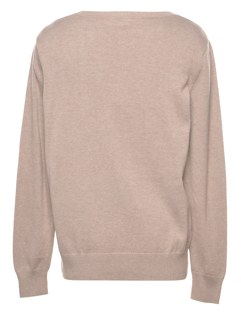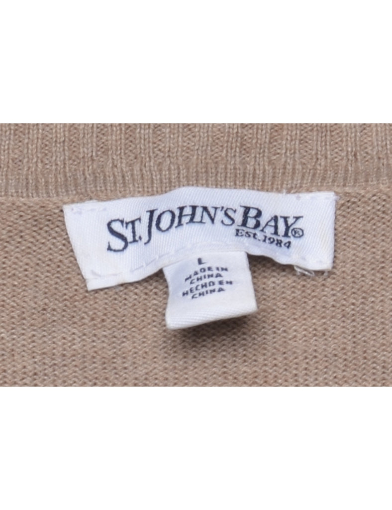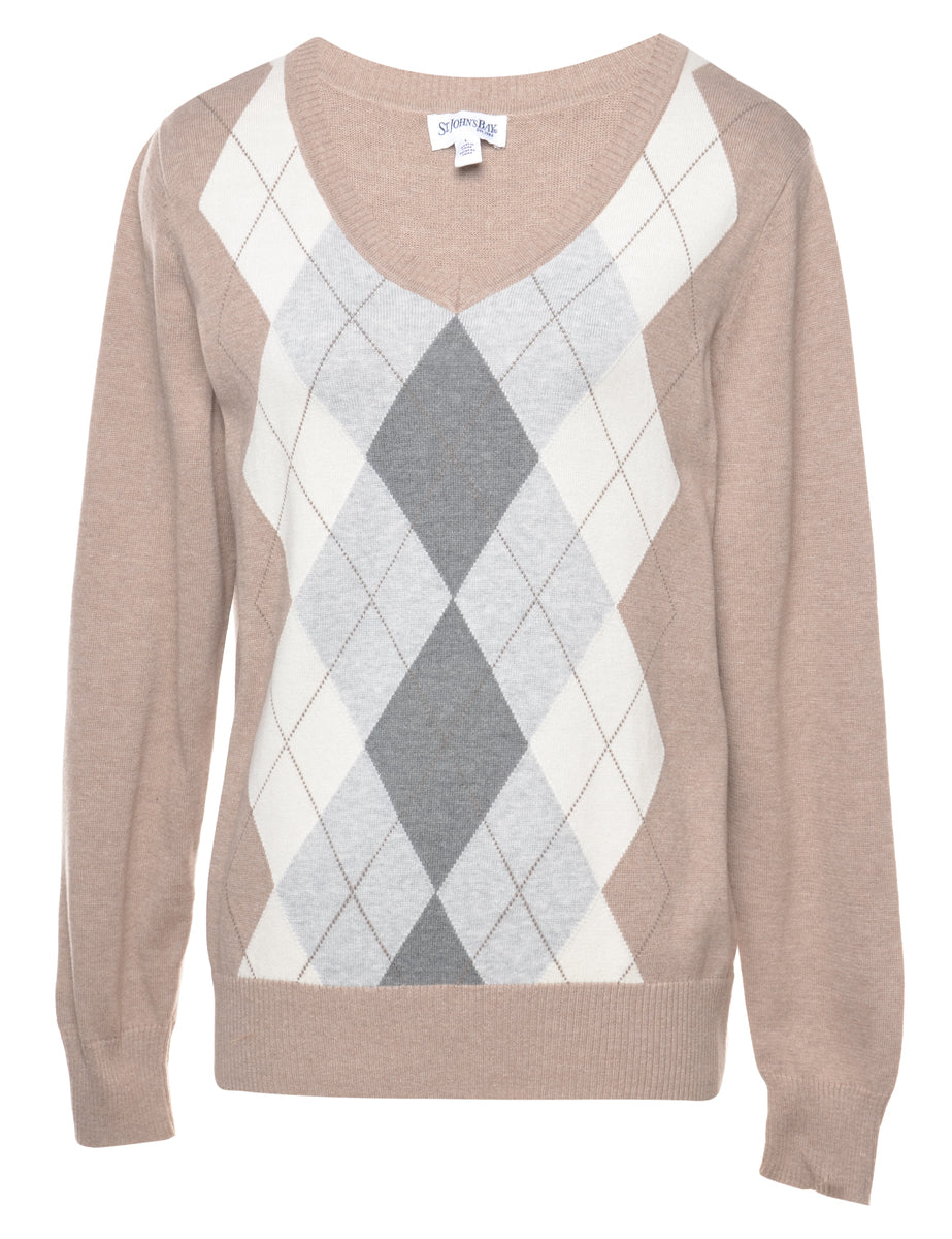 St John's Bay argyle jumper in light brown with a v-neck.