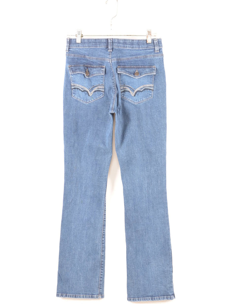 Straight leg lee jeans. Comes in medium wash with multiple pockets.