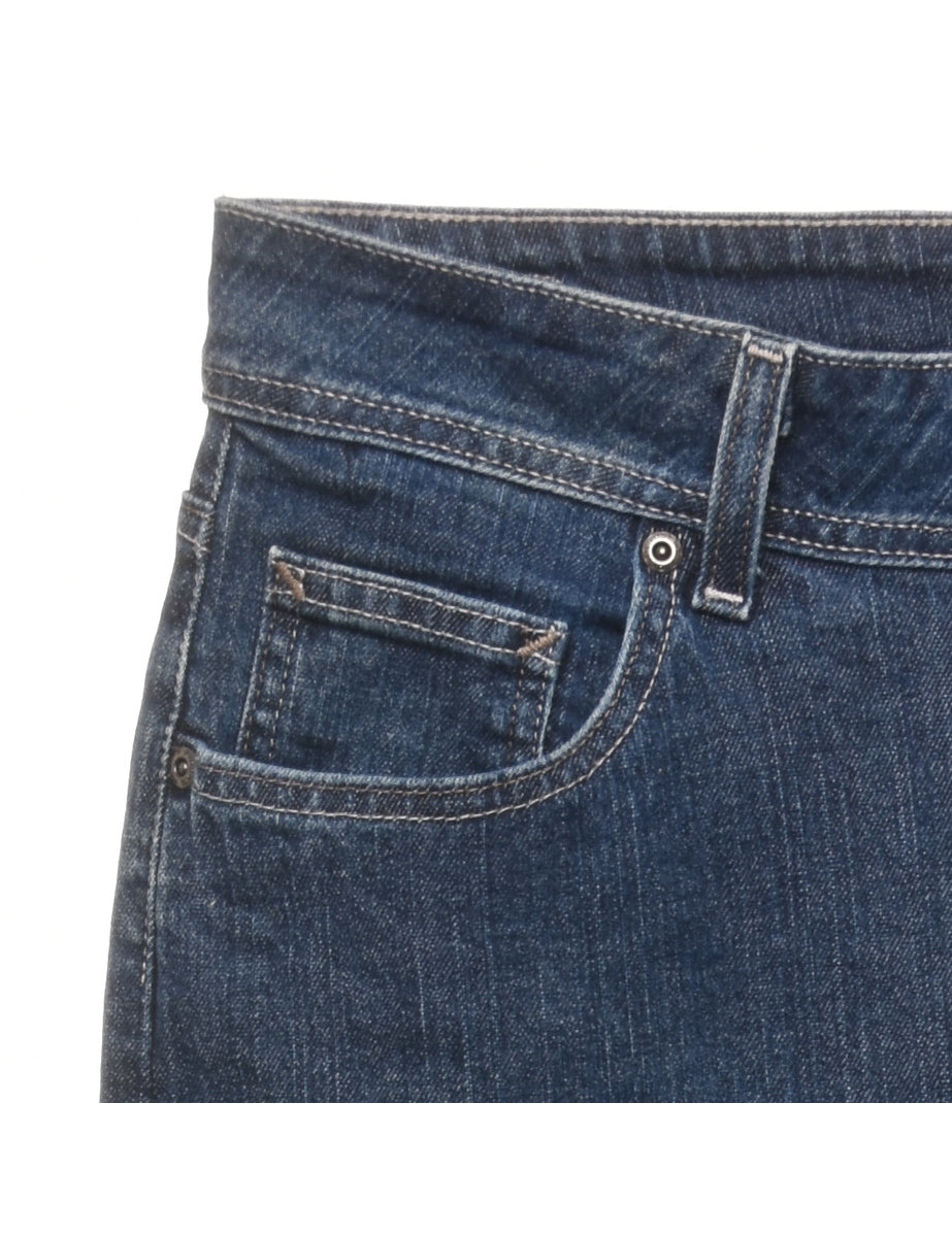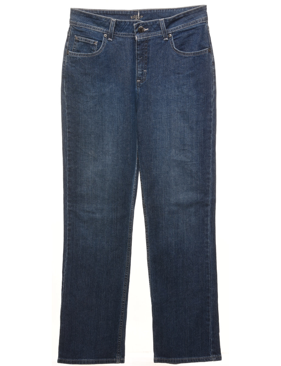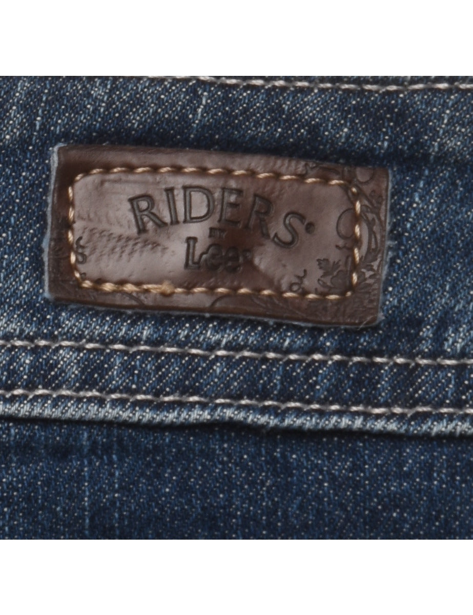 Straight leg lee jeans in dark wash with belt loops.