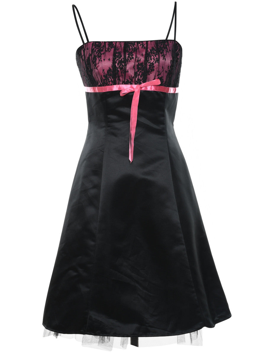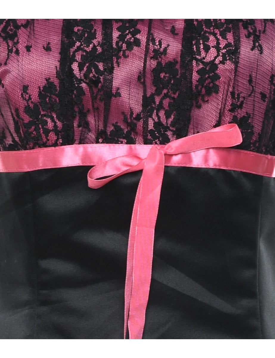 1990s Vintage Y2K Strappy Black & Pink Evening Dress - XS