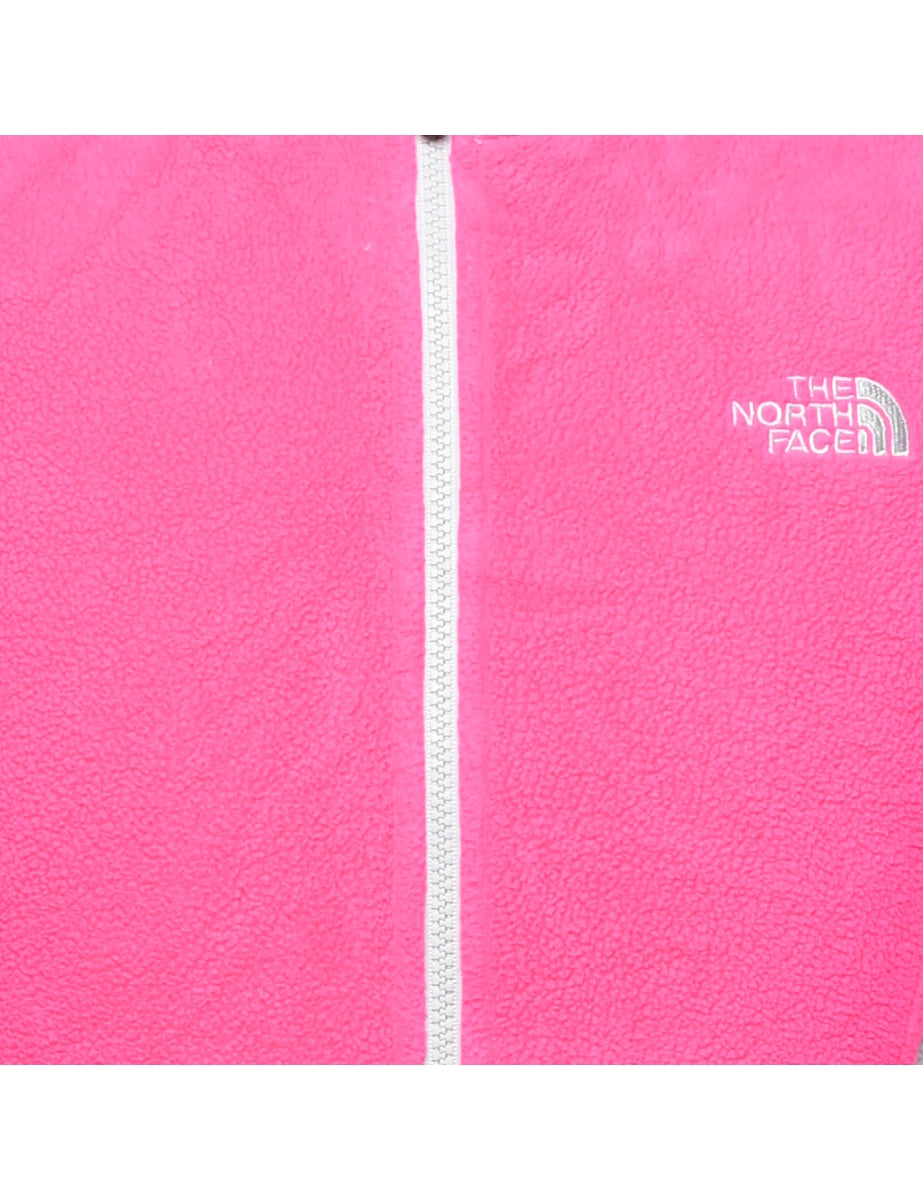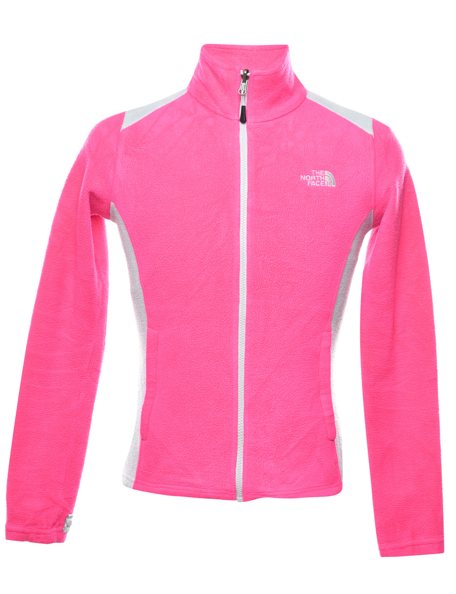 Pink fleece sweatshirt the north face brand with two pockets, contrasting panels and front zipper.