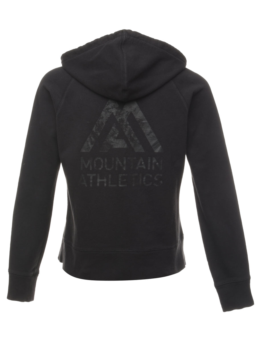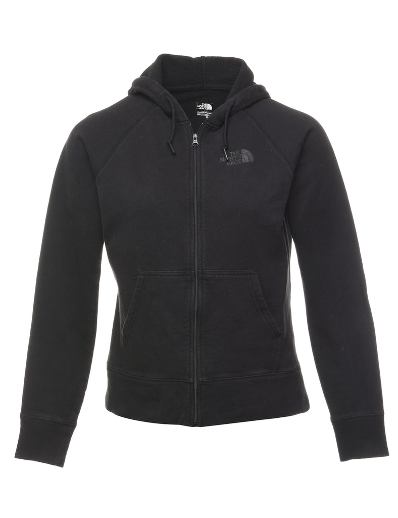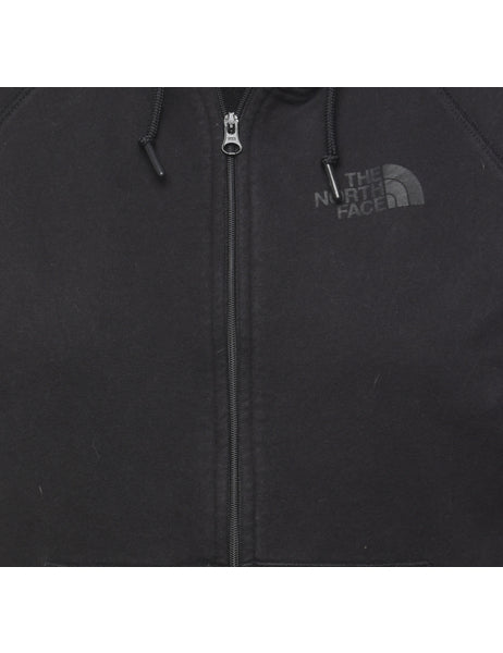 The North Face hooded track top in black with slash pockets and raglan sleeves.