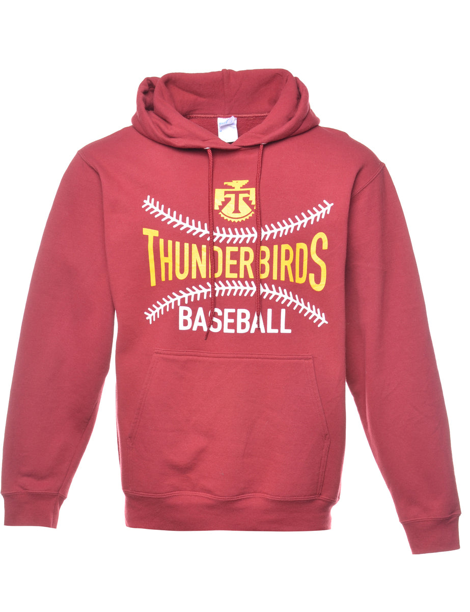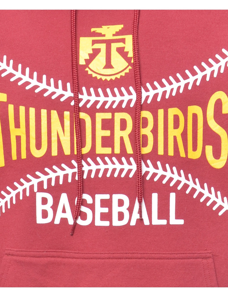 Thunderbirds Baseball printed hoodie. Comes in burgundy with one pocket and ribbed cuffs and waistband.