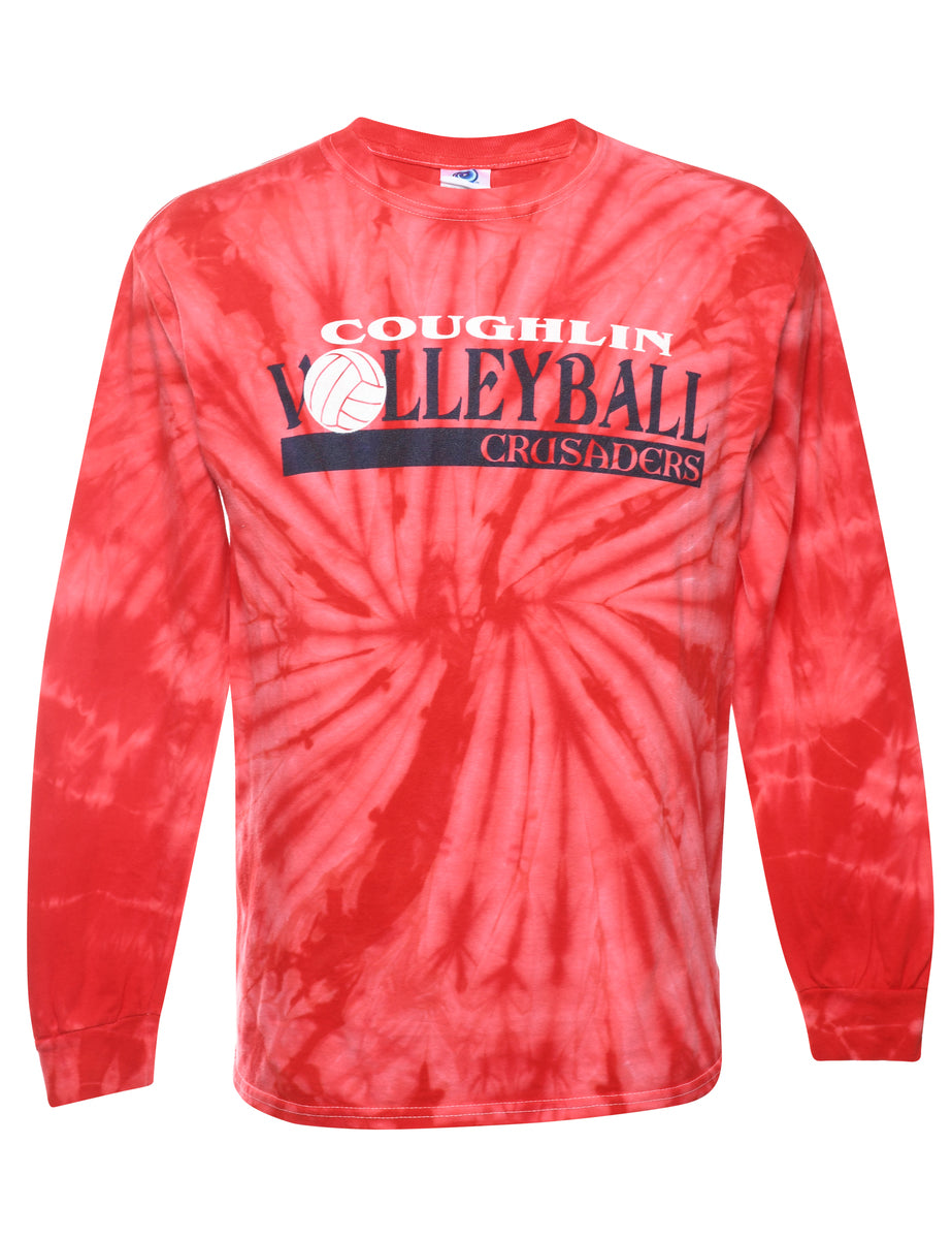 Tie dyed coughlin volleyball crusaders t-shirt in red.