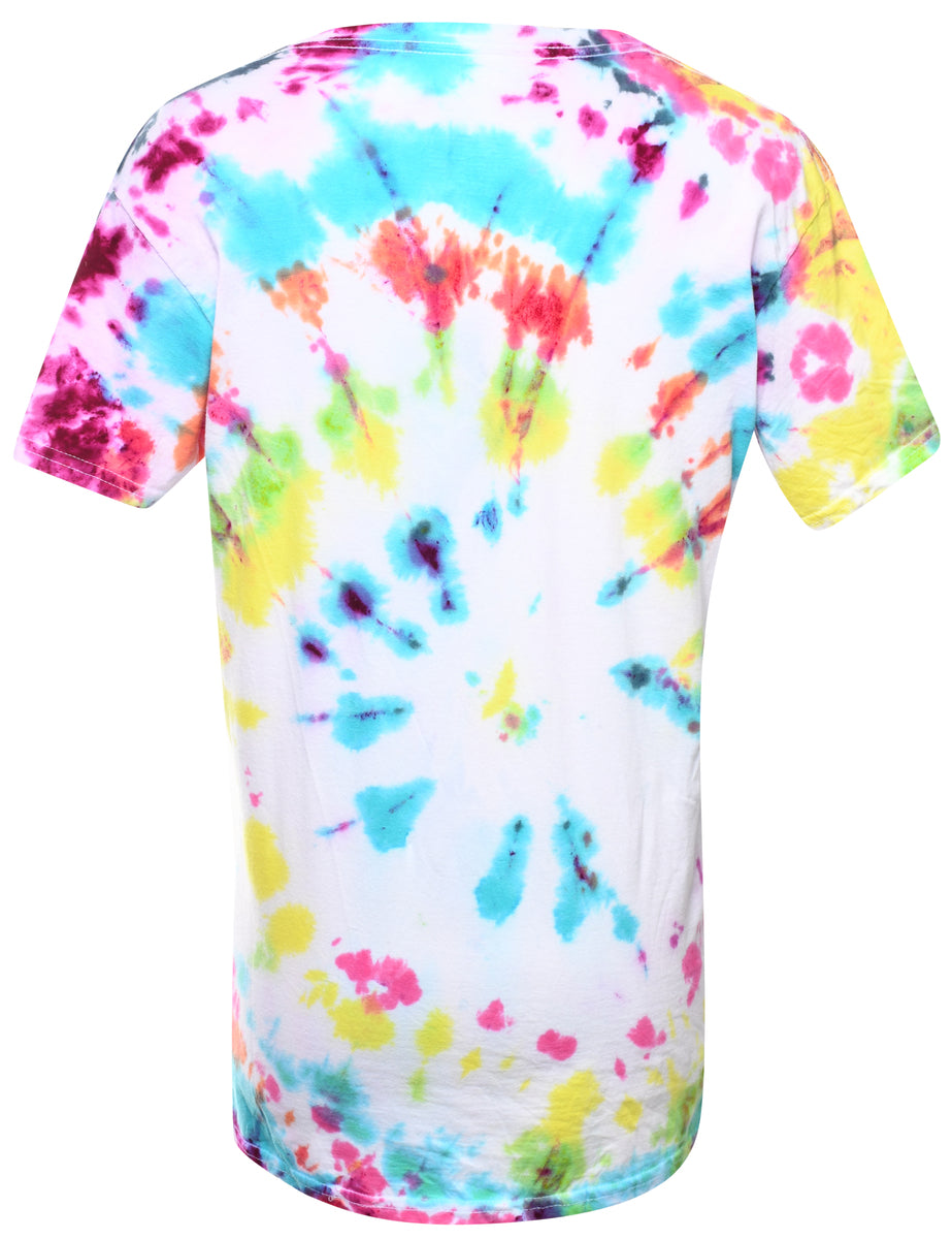 Tie dyed t-shirt in multi-colour with a v-neck.