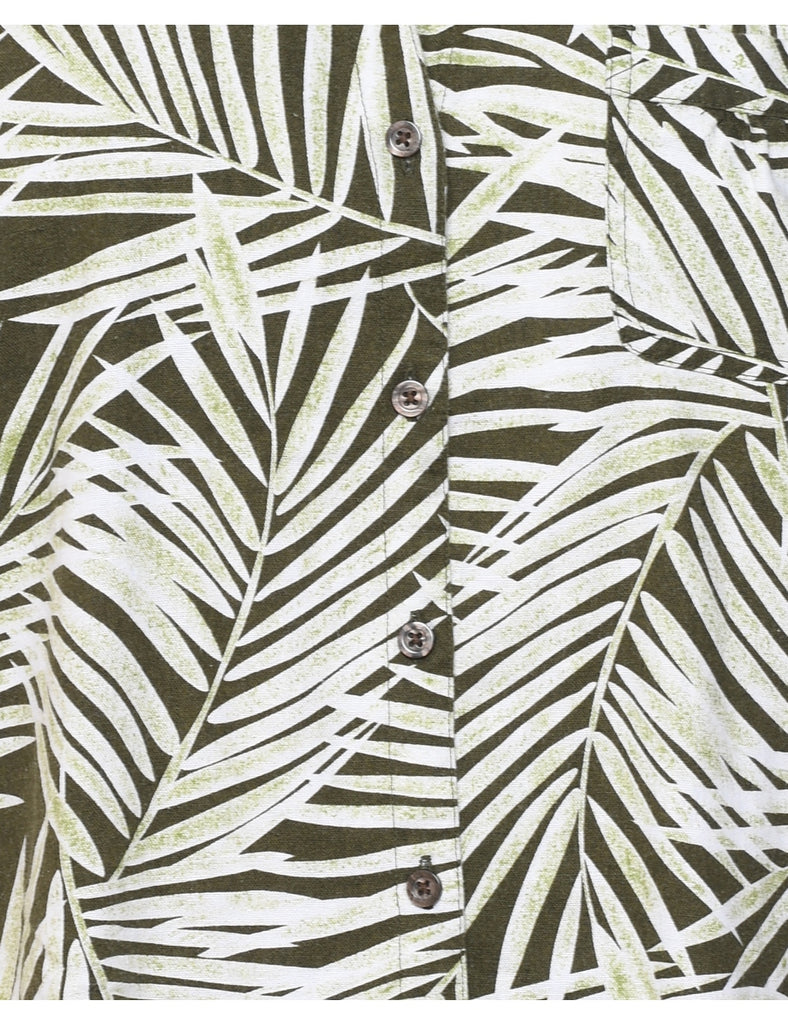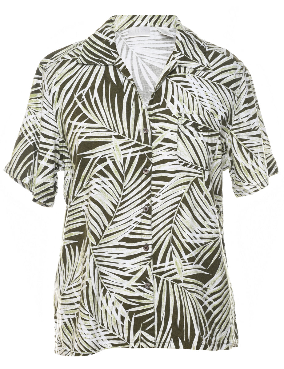 Erika short sleeve hawaiian shirt with tropical print. Comes in olive green.