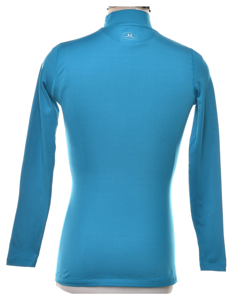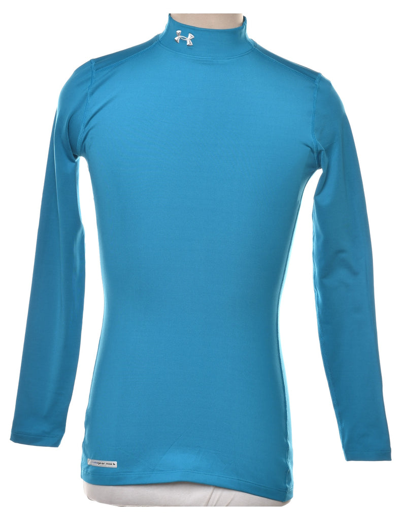Long sleeved plain t-shirt in blue with a high neck. From the brand Under Armour.