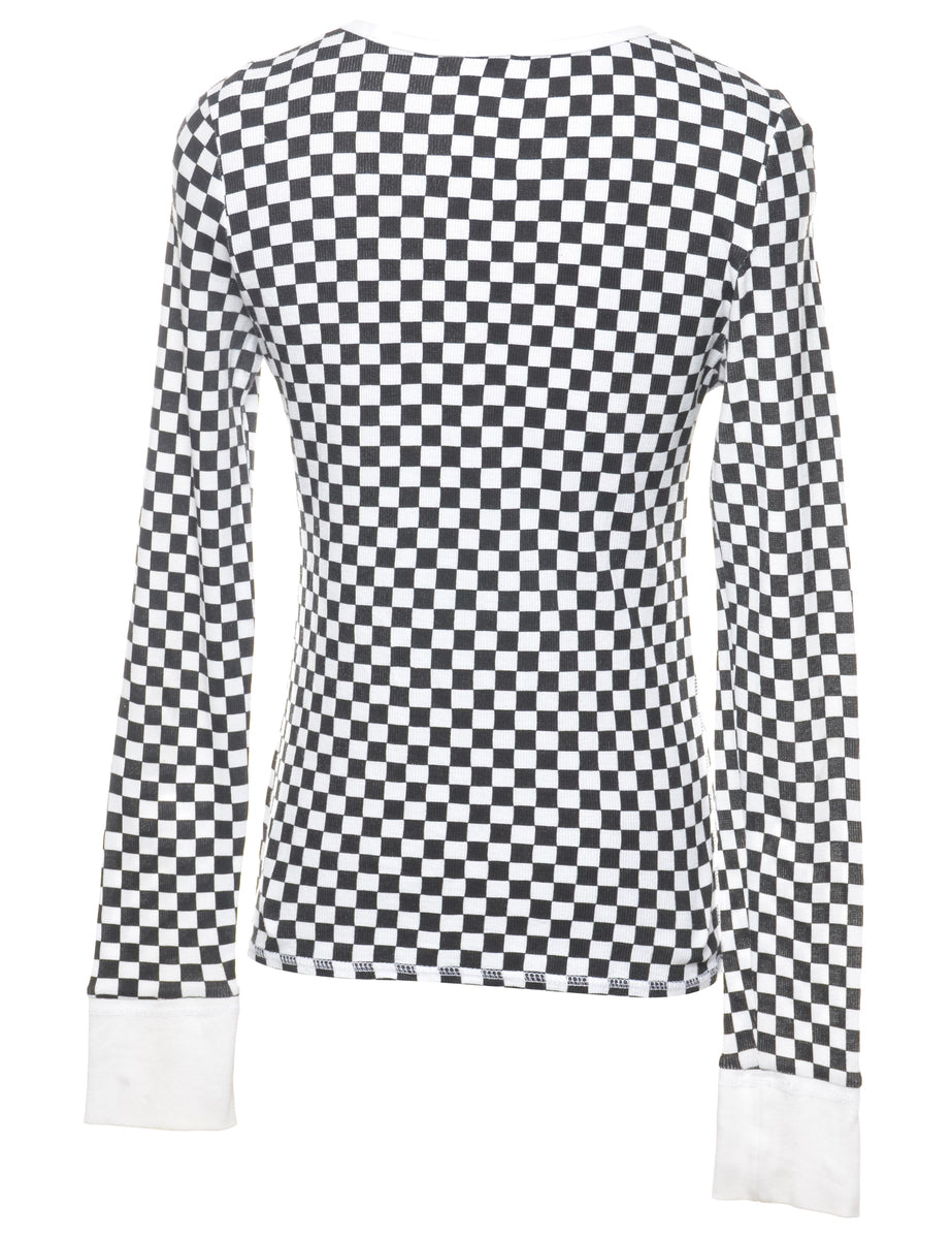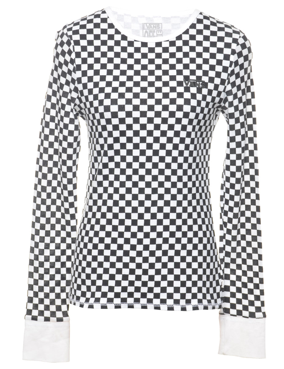 Long-sleeved checked t-shirt from Vans. Comes in white & black. The size label mentions M but based on the actual measurements we consider it a size S.