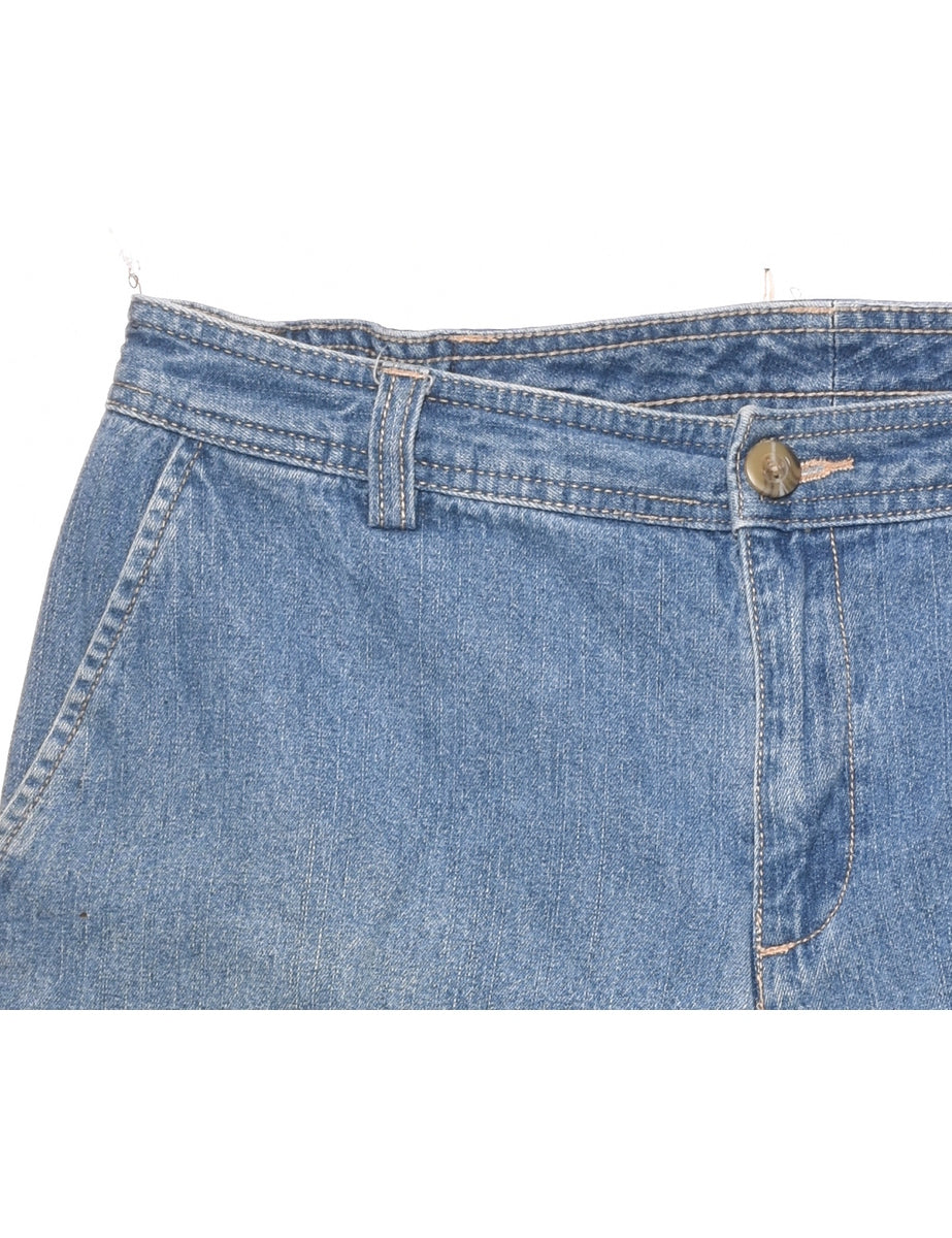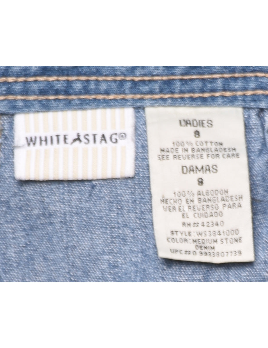 Medium wash White Stag denim shorts with belt loops and multiple pockets.