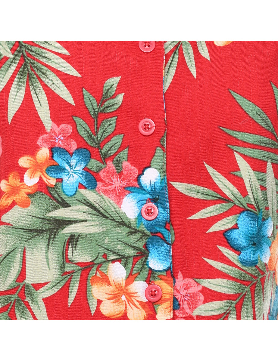 Floral hawaiian shirt in red with a revere front. From the brand White Stag.