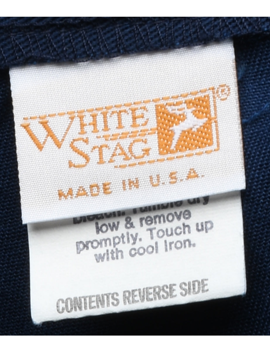 Knee length plain shorts. White Stag in navy with pleating and multiple pockets.
