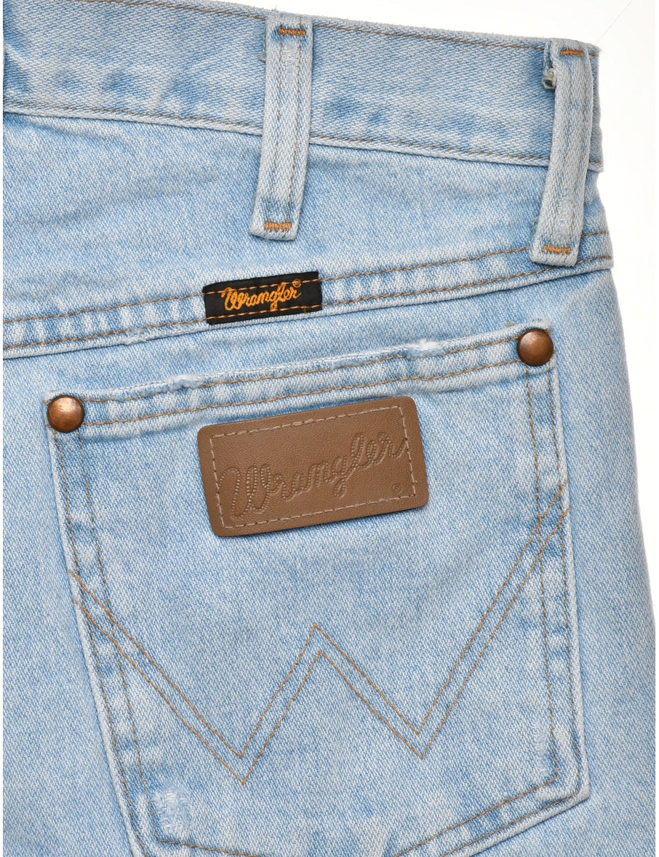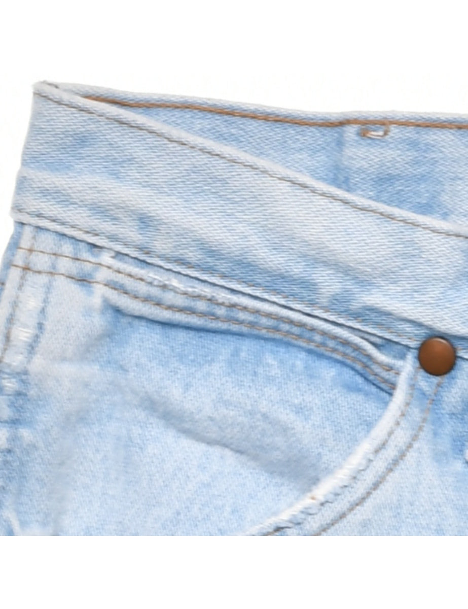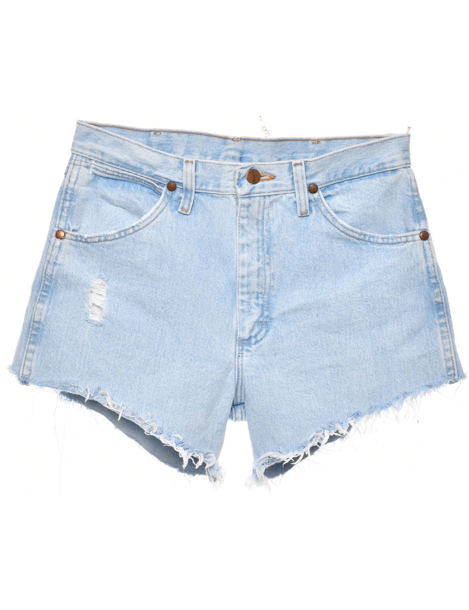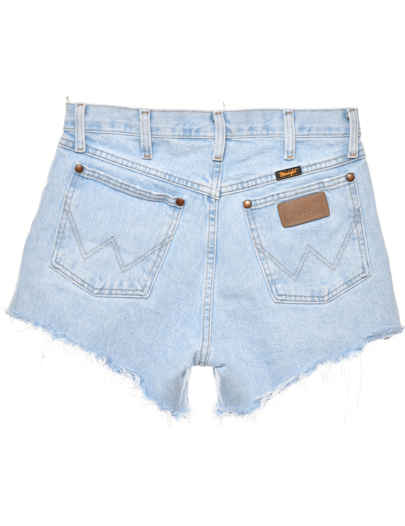 Wrangler distressed denim shorts in light wash with a frayed hem and belt loops.